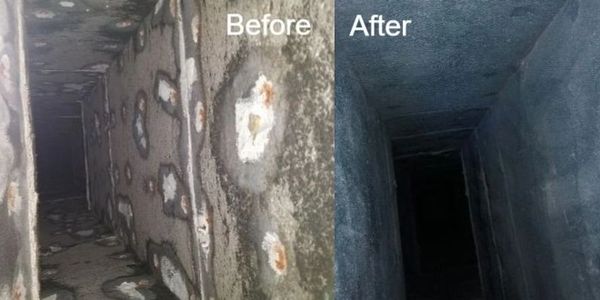 1. After cleaning apply Carlisle Product RE-500 and/or RS-100 to all the lined duct. Apply with Graco 495 sprayer & controlling the overspray with our abatement system.